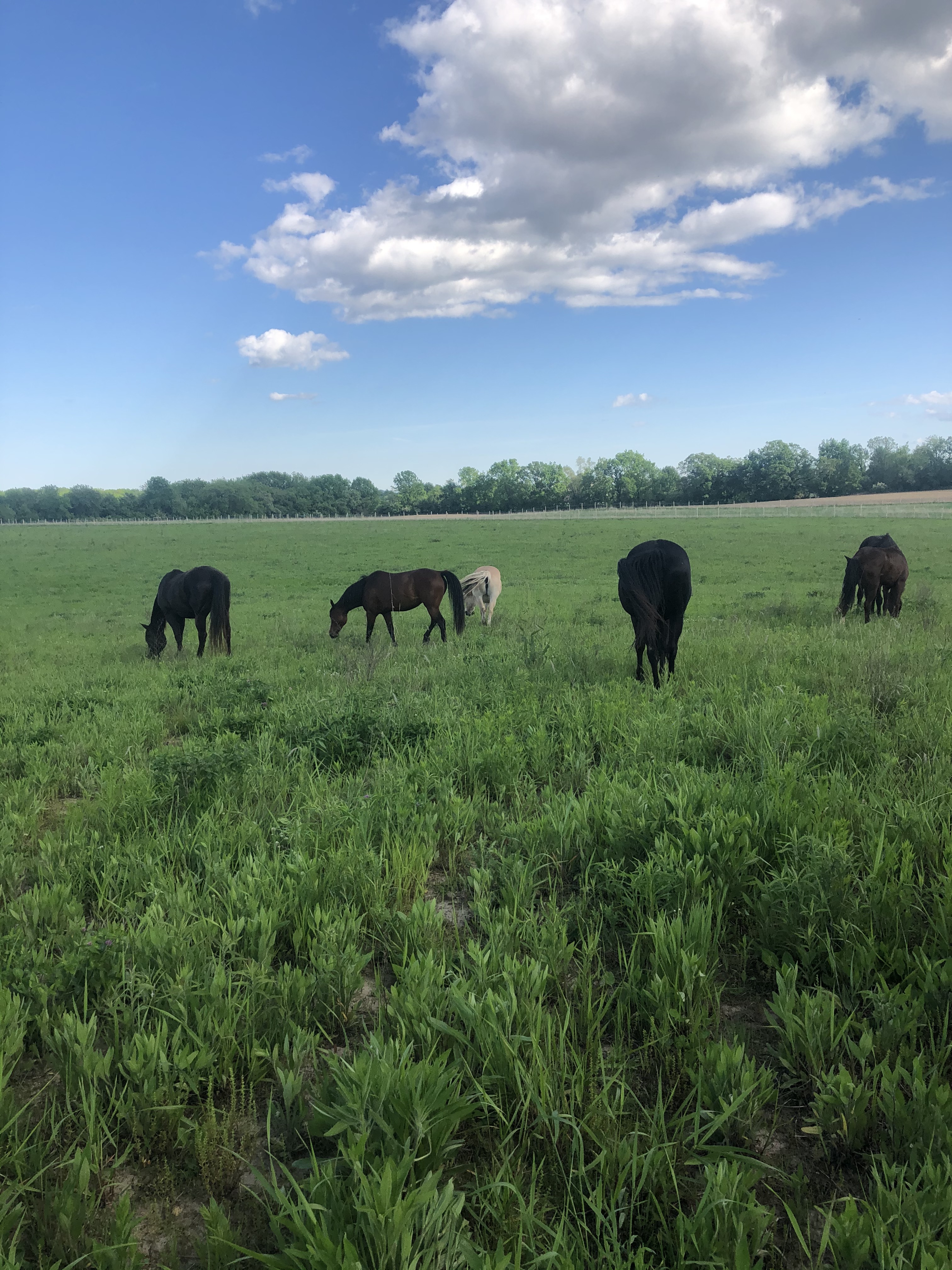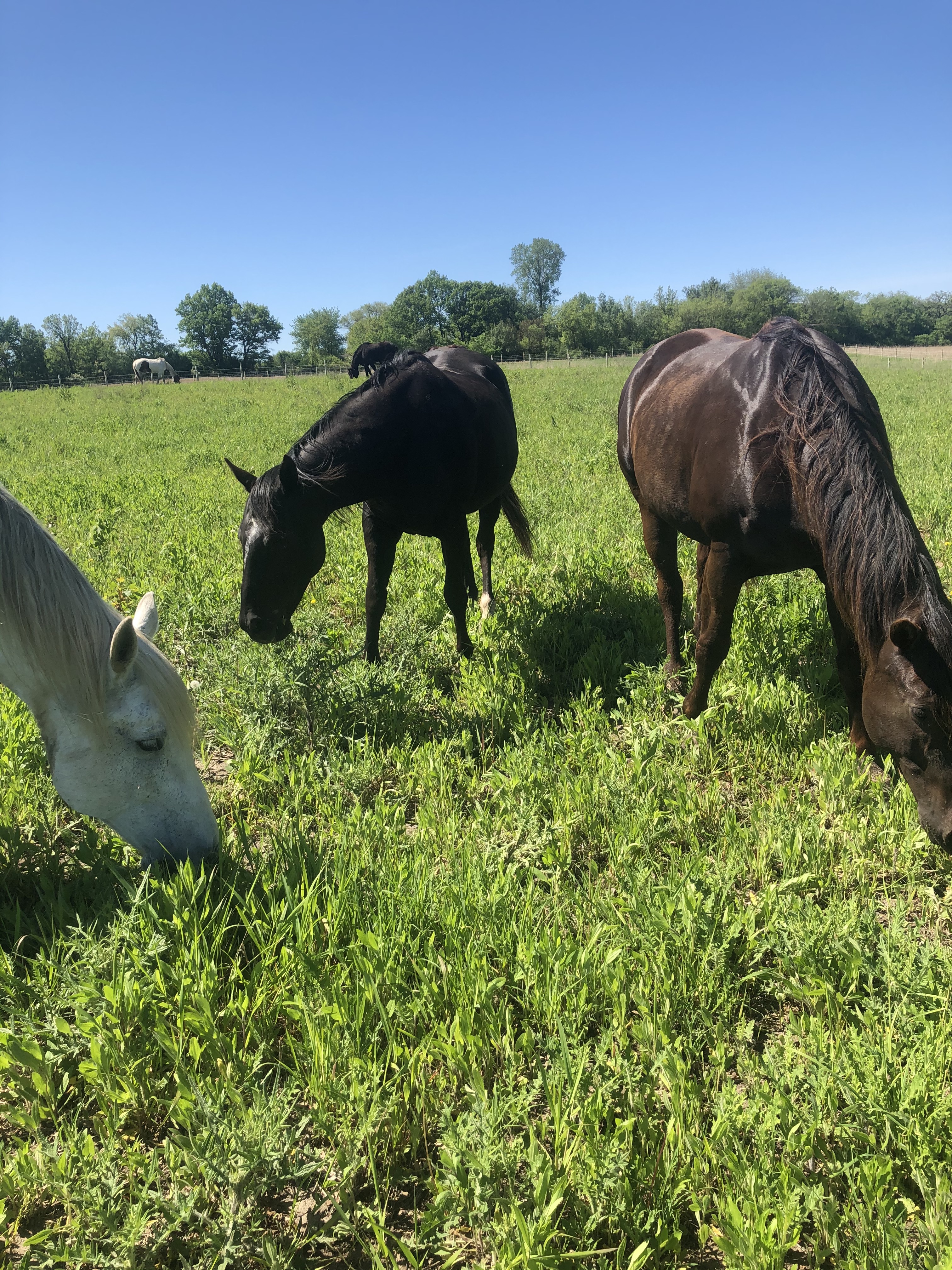 It can be hard trying to maintain the pastures and hoping/praying the grass gets long enough and the horses don’t eat it all down in a day. We are still learning, but this year the grass has come in the best it has in the three years we’ve been here and the horses seem happy.
